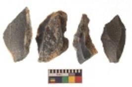 | Description / विवरण | There are n 4 utilized flakes. There are multi directional irregular scar pattern on both dorsal and ventral face of the flakes. One is tapering at one end and three have sharp edges. |