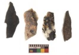 | Description / विवरण | There are n 4 utilized flakes. There are multi directional irregular scar pattern on both dorsal and ventral face of the flakes. Two are tapering at one end and two have sharp edges. |