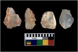 | Description / विवरण | There are n 4 utilized flake cores. There are multi directional irregular scar pattern on them. Two are tapering at one end and two have blunted edges. |