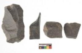 | Description / विवरण | There are n 4 utilized flakes. There are multi directional irregular scar pattern on both dorsal and ventral face of the flakes. One has sharp edge and three have blunted edges. |