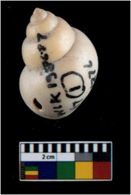| Description / विवरण | A small conch shell with a transverse perforation on the side. |