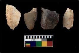 | Description / विवरण | There are n 4 utilized flake cores. There are multi directional irregular scar pattern on them. Two are tapering at one end and two have blunted edges. |