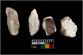 | Description / विवरण | There are n-4 of utilized flake cores. There are multidirectional irregular dominant scar pattern on both dorsal and ventral face of the cores. |
