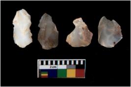| Description / विवरण | There are n 4 utilized flake cores. There are multi directional irregular scar pattern on them. Two are tapering at one end and two have blunted edges. |