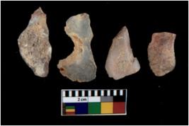 | Description / विवरण | There are n 4 utilized flake cores. There are multi directional irregular scar pattern on them. Two are tapering at one end and two have blunted edges. |