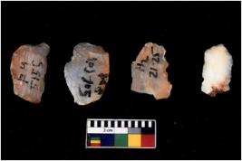 | Description / विवरण | There are n 4 cores; there are multi directional irregular scar pattern on them. The flake scars are seen on all sides. 2 chalcedony and 2 quartz |
