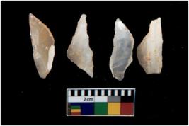 | Description / विवरण | There are n 4 utilized flake cores. There are multi directional irregular scar pattern on them. One is tapering at one end and three have sharp edges. |