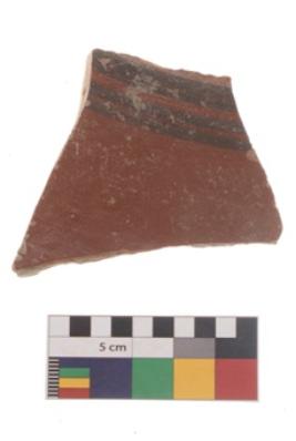 | Description / विवरण | Specimen of black on red ware with decorative geometric Three parallel lines painting. |