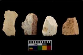 | Description / विवरण | There are n-4 of utilized flake cores. There are multidirectional irregular dominant scar pattern on both dorsal and ventral face of the cores. |