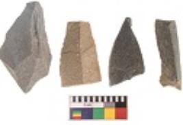 | Description / विवरण | There are n 4 utilized flakes. There are multi directional irregular scar pattern on both dorsal and ventral face of the flakes. Two are tapering at one end and two have sharp edges. |