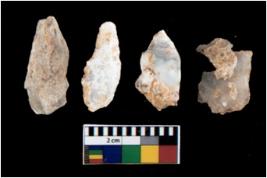 | Description / विवरण | There are n 4 utilized flake cores. There are multi directional irregular scar pattern on them. All of them are tapering at one end. |