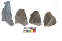 | Description / विवरण | There are n 4 utilized flakes. There are multi directional irregular scar pattern on both dorsal and ventral face of the flakes. One is tapering at one end and three have blunted edges. |