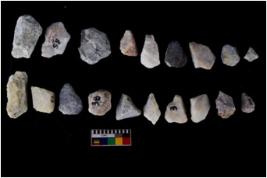 | Description / विवरण | There are n 20 n 19 flakes; there are multidirectional irregular scar pattern on them; made of short flakes, few are blades, one has pen pointed edge and few have tapering harp edges. |