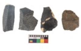 | Description / विवरण | There are n 4 utilized flakes. There are multi directional irregular scar pattern on both dorsal and ventral face of the flakes. Two are tapering at one end and two have blunted edges. |