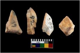 | Description / विवरण | There are n 4 cores. There are multi directional irregular scar pattern on both dorsal and ventral face of the cores. Some have blunted edges and some have round edges. |