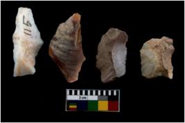 | Description / विवरण | There are n-4 of utilized flake cores. There are multidirectional irregular dominant scar pattern on both dorsal and ventral face of the cores. |