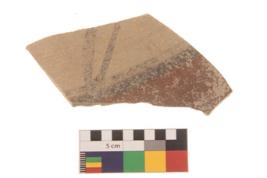 | Description / विवरण | Specimen of black on red ware with traces of decorative geometric Two parallel lines and two vertical lines painting. |