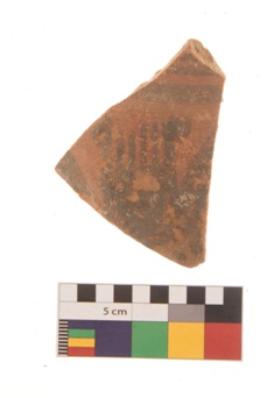 | Description / विवरण | Specimen of black on red ware with traces of decorative geometric Vertical strokes painting. |