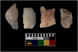 | Description / विवरण | There are n 4 utilized flake cores. Out of them three are made up of Chalcedony and one is made up of Chert. There are multi directional irregular scar pattern on them. All of them are tapering at one end. |