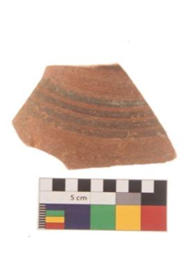 | Description / विवरण | Specimen of black on red ware with decorative geometric Four parallel lines painting. |