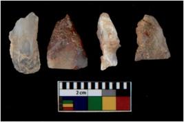 | Description / विवरण | There are n 4 utilized flake cores. There are multi directional irregular scar pattern on them. All of them are tapering at one end. |