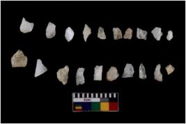 | Description / विवरण | Specimen of flakes tool with prominent flaking marks. It made up of a short flakes with sides trimmed |