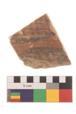| Description / विवरण | Specimen of black on red ware with decorative geometric Outcurved lines painting. |