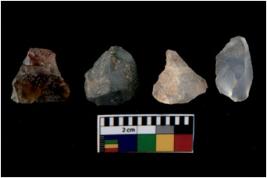 | Description / विवरण | There are n 4 utilized flake cores. Out of them three are made up of Chalcedony and one is made up of Chert. There are multi directional irregular scar pattern on them. One has blunted edge and three have round edges. |