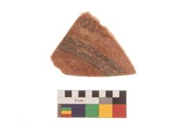 | Description / विवरण | Specimen of black on red ware with decorative geometric Three parallel lines painting. |