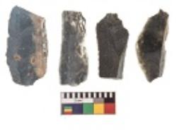 | Description / विवरण | There are n 4 utilized flakes. There are multi directional irregular scar pattern on both dorsal and ventral face of the flakes. Three are tapering at one end and one has sharp edge. |