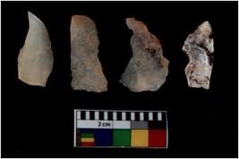 | Description / विवरण | There are n 4 utilized flake cores. Out of them three are made up of Chalcedony and one is made up of Chert. There are multi directional irregular scar pattern on them. One is tapering at one end and three have sharp edges. |