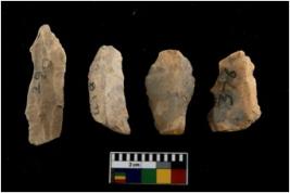 | Description / विवरण | There are n 4 cores. There are multi directional irregular scar pattern on both dorsal and ventral face of the cores. Some have blunted edges and some have round edges. |