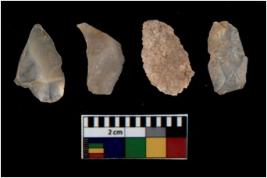 | Description / विवरण | There are n 4 utilized flake cores. There are multi directional irregular scar pattern on them. All of them are tapering at one end. |