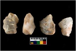 | Description / विवरण | There are n 4 cores. There are multi directional irregular scar pattern on both dorsal and ventral face of the cores. Some have blunted edges and some have round edges. |