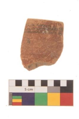 | Description / विवरण | Specimen of black on red ware with traces of decorative geometric Three parallel lines painting. |