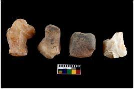 | Description / विवरण | There are n 4 cores. There are multi directional irregular scar pattern on both dorsal and ventral face of the cores. Some have blunted edges and some have round edges. |