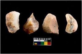 | Description / विवरण | There are n 4 cores. There are multi directional irregular scar pattern on both dorsal and ventral face of the cores. Some have blunted edges and some have round edges. |