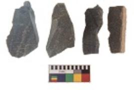 | Description / विवरण | There are n 4 utilized flakes. There are multi directional irregular scar pattern on both dorsal and ventral face of the flakes. Three are tapering at one end and one has sharp edge. |