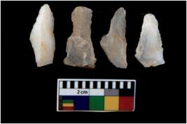 | Description / विवरण | There are n 4 utilized flake cores. There are multi directional irregular scar pattern on them. All of them are tapering at one end. |