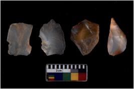 | Description / विवरण | There are n 4 of utilized worked cores.There are multidirectional irregular dominant scar pattern on both dorsal and ventral face of the flakes. |