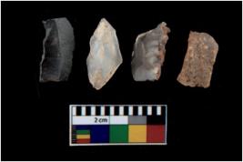 | Description / विवरण | There are n 4 utilized flake cores. Out of them three are made up of Chalcedony and one is made up of Chert. There are multi directional irregular scar pattern on them. All of them are tapering at one end. |