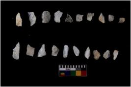 | Description / विवरण | Specimen of flakes tool with prominent flaking marks. It made up of a short flakes with sides trimmed |