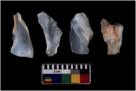 | Description / विवरण | There are n 4 of utilized worked cores and have multidirectional irregular dominant scar pattern on both dorsal and ventral side. Two have broken tip. |