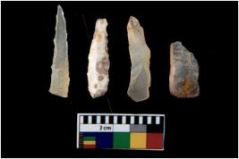 | Description / विवरण | There are n 4 utilized flake cores. There are multi directional irregular scar pattern on them. One is tapering at one end and three have sharp edges. |