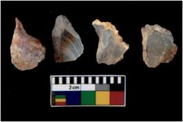 | Description / विवरण | There are n 4 utilized flake cores. There are multi directional irregular scar pattern on them. One has sharp edge and three have blunted edges. |
