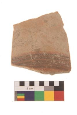 | Description / विवरण | Specimen of black on red ware with traces of decorative geometric Five parallel lines painting. |