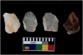 | Description / विवरण | There are n 4 utilized flake cores. There are multi directional irregular scar pattern on them. One has sharp edge and three have blunted edges. |