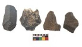 | Description / विवरण | There are n 4 utilized flakes. There are multi directional irregular scar pattern on both dorsal and ventral face of the flakes. Two have flat base and two have blunted edges. |