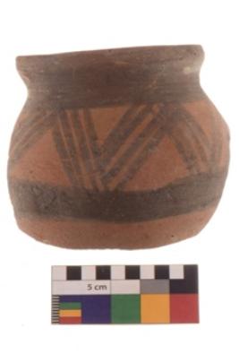 | Description / विवरण | Specimen of a Potsherd with black decorative geometric painting on it. It is set of two zigzag bands. |