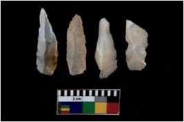 | Description / विवरण | There are n 4 utilized flake cores. There are multi directional irregular scar pattern on them. All of them are tapering at one end. |